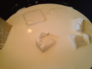 【チーズ豆腐】のネーミングですが、豆腐は入りません。味見の段階で、豆腐っぽいと思いましたが、クリームチーズとプロセス(スライス)チーズ、生クリームが入って濃厚です。