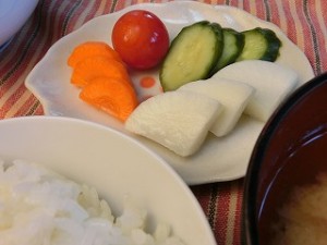 (私は、きゅうり、にんじん、大根を皮を剥いて、ミニトマトはそのままで)