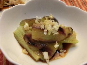 「秋の和定食」ということで、【超カンタン焼きナス】を付け合わせに作っていました。