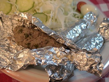 ソーセージといっても手で成形してアルミホイルで包んで蒸すだけ!