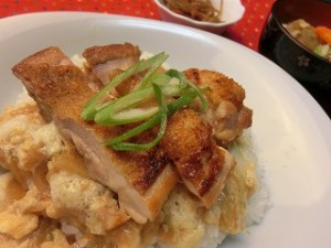 鶏肉の皮目をパリッと香ばしく焼き、卵は泡立ててふわっと仕上げるところがポイントです!