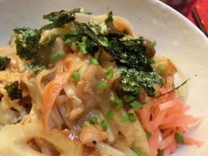 7、2の合わせ調味料を加えて、全体に絡めます。