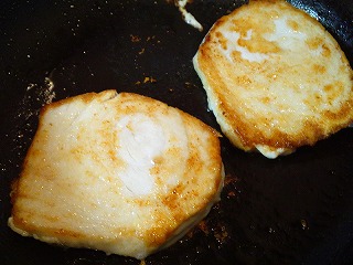 別フライパンにオリーブオイルをひき、余計な小麦粉をふるい落として中火で片面2分半、返して30秒(弱火)焼きます。