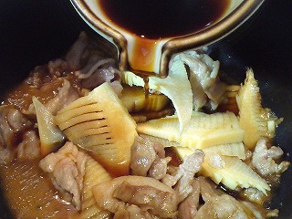 ※たけのこと豚肉の切り落とし肉を甘辛く煮ます