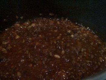 2.鍋にサラダ油を熱してバター(10g)を溶かし、塩・こしょうを振った牛ミンチを入れて、軽くほぐしながら焼き付けるようにしっかり炒める。