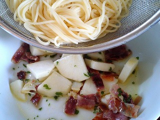 【洋ナシのお手軽パスタ】レシピ