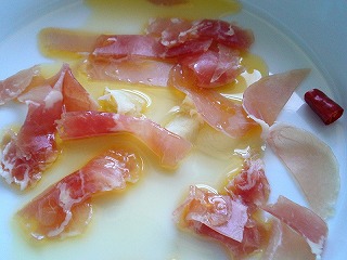 ※生ハムとオリーブ油を加熱することで、熟成されたうま味がオイルに移り美味しいソースになる