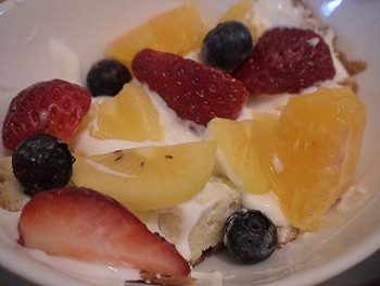 4.3の上に、同様にカステラ、1ヨーグルトの残り、最後にフルーツを飾る。
