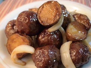 コロコロの肉だんごと新じゃが、新玉ねぎ、の3品レシピです。