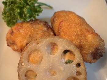 焦がし気味に揚がって、ナゲットというよりも「さつま揚げ」のようですが、せっかく作ったので、ブログにあげておきます・・・(^_^;)