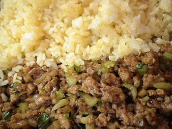 ※鶏ひき肉とれんこんに豆板醤、甜麺醤でしっかり味付けし、美味しいチャーハンに!