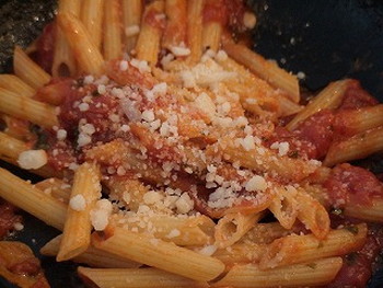 「ミートボール・ピザ・ハンバーグなどのソースにも使えて重宝しますよ!」と落合シェフおすすめのアラビアータソースの【ペンネアラビアータ】のレシピ・作り方は、続きに書きました。