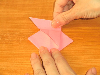 4、裏も同じようにおります。ここまで「風船(ふうせん)」と同じ折り方です。