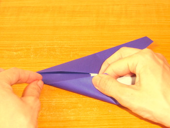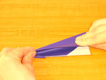 折り方の工程4のところで左の先を三角に折ります。折る位置を変えてみると飛び方も変わるようです。