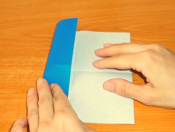 1、中央に折り筋をつけてから、左右を折ります。
