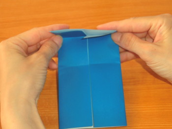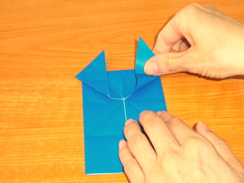 角を作るときに、真上に向けて折りましょう。