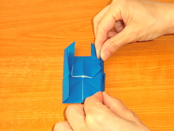 4、2の形までもどしたら、上の部分を外に開きます。