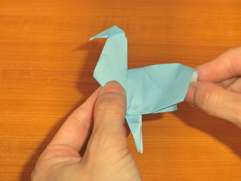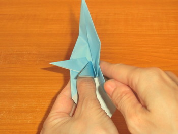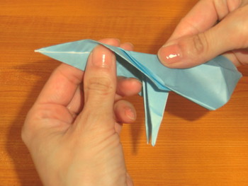 13、頭は外わり折りに、尻尾は中に折り入れます。足はそれぞれ中割折りにします。