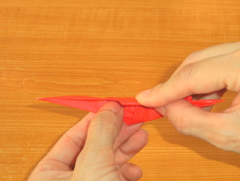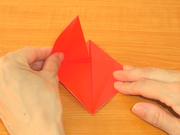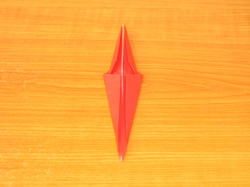 6、左右から細い三角をおります。