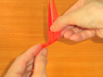 11、少し引っ張って、形をととのえてえびの出来上がり。