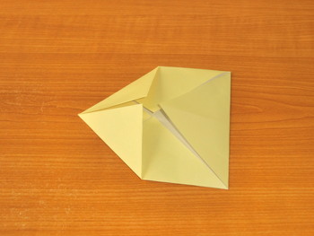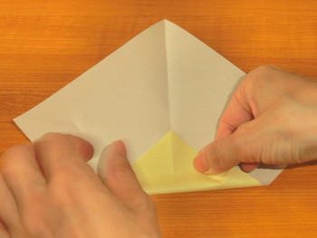 2、左の上下の角をもう一度真ん中に向けて折ります。