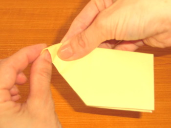 6、手前の1枚を折り上げます。もう1枚は、向こう側に折り上げます。