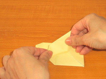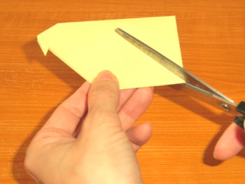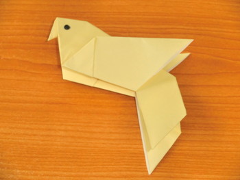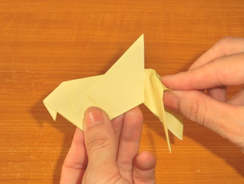 尾っぽの長い「おながどり」を折り紙で作ってみます。 羽になる部分は、ハサミを使って作ります。(折り方の工程5)