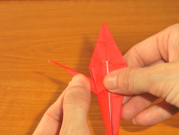 7、重なっている部分を引き出しながら、上へ開いてつぶします。