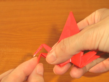 12、上の角を山折にして、カニの出来上がり。